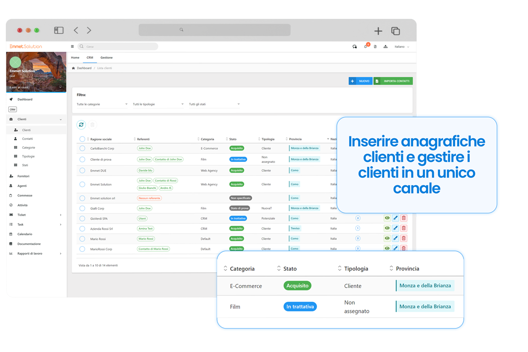 Scegli un software CRM centralizzato per la rapida gestione dei clienti. Utilizzalo quando vuoi e dove vuoi, accessibile da pc, smartphone e tablet. Zero limiti per l’inserimento utenti.