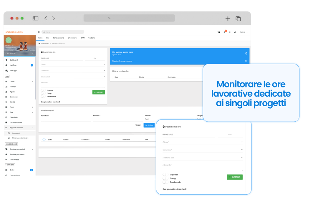 progetti e commesse - Gestione e monitoraggio ore lavorative dipendenti