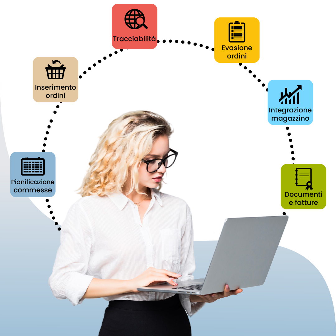 Il nostro software in cloud è studiato per semplificare e ottimizzare la gestione degli ordini e delle commesse di produzione, adattandosi perfettamente alle specifiche necessità del tuo processo produttivo.